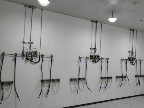 1.氣瓶間內壓強調接面板開關與實驗性車間內的氣路終端設備中并選擇SS316LBA管對其進行接入,管路內外表面油亮度為Ra<0.4umBA級管路。